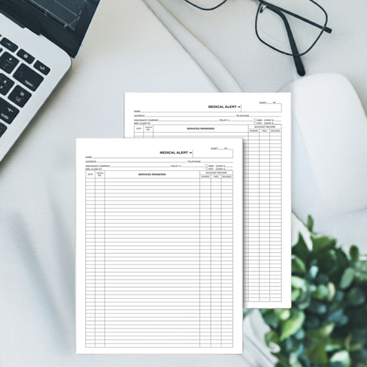 D102 Dental Exam Record Notes Form 8 1/2 x 11" QTY 100