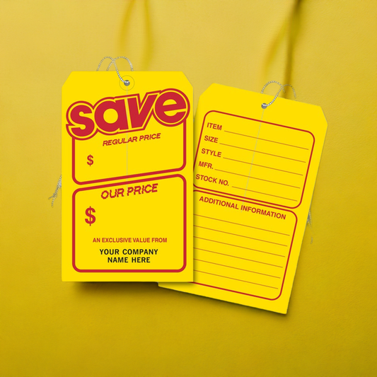176-1 Save Tags Stock Yellow Large 3 1/8 x 6 1/4" QTY 250 Imprinted
