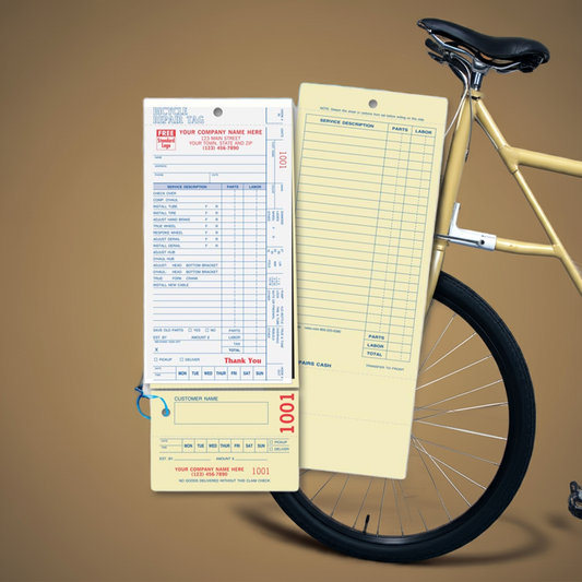 364 Bicycle Repair Tags with Detachable Claim Check Carbons 4 1/4x11"