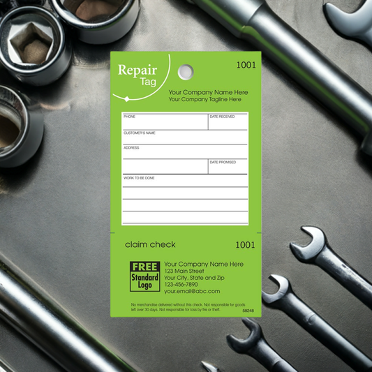 58248 Repair Tag in Green w/White Fill-In Space 3 1/8 x 5 1/2" QTY 250
