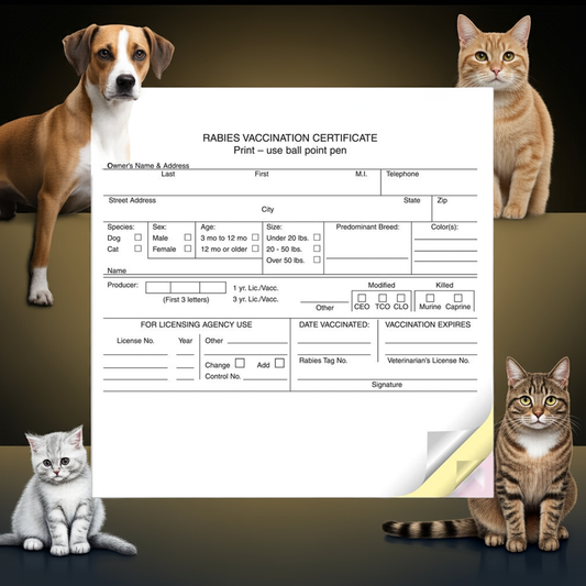7718 Vet Rabies Vaccination Certificates Imprinted 5 3/8x5 1/8"QTY 250