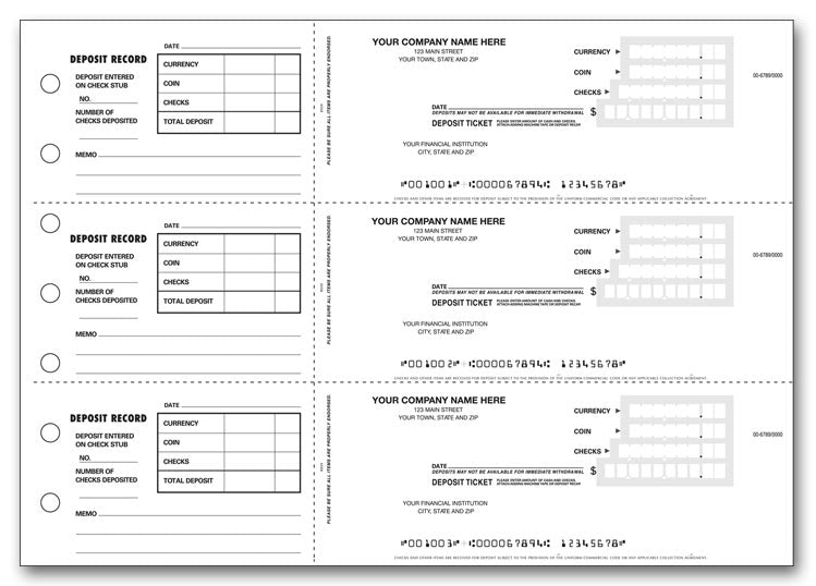 100053 3 On A Page Deposit TicketsSize: 12 15/16 x 9" The safe and easy way to make deposits for users of 3-On-A-Page Checks! Guaranteed to work with your bank, these deposit tickets improve processing and meet the precise requirements...