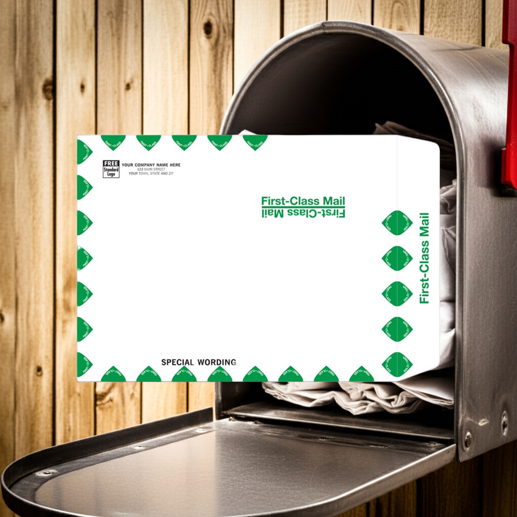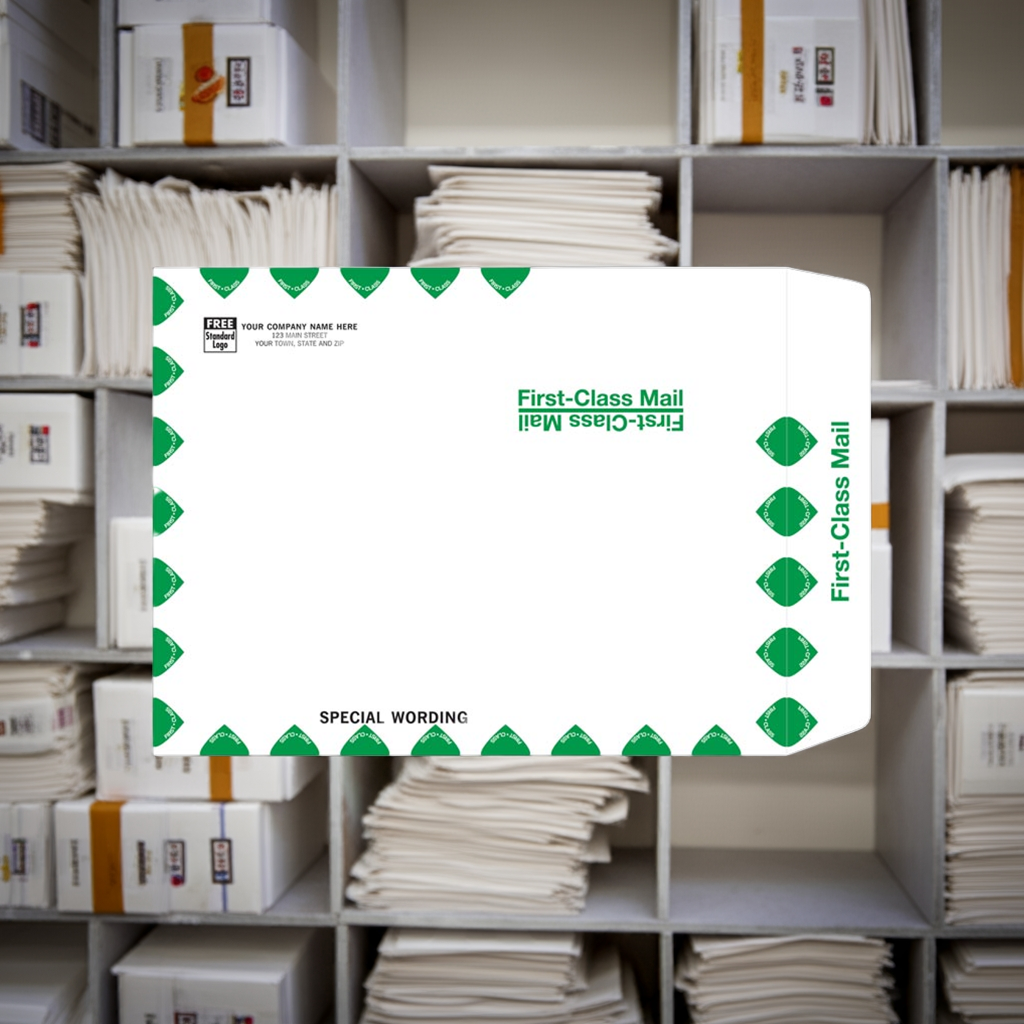 1013FW White First Class EnvelopeSize: 10 x 13" Preprinted with your business name and address, the White First Class Personalized Standard Seal Business Envelopes - 1013FW are perfect for photographs, catalogs and large documents. First-Class Mail preprinted. FREE printed...