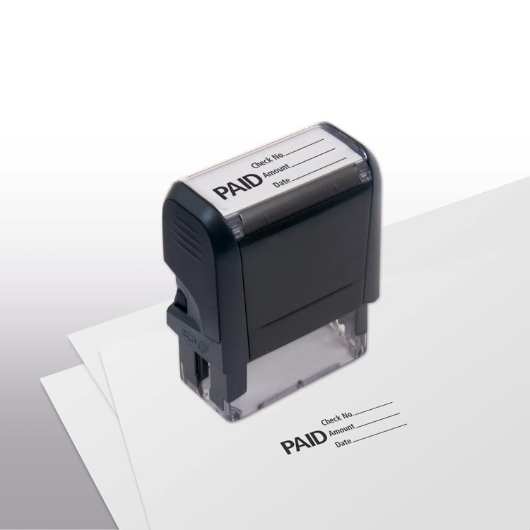 103010 Paid With Lines Stamp Self-InkingSize: 1 11/16 x 9/16"Save time and put an end to repetitive writing!Designed for rapid, high-frequency use that will deliver thousands of impressions. No messy ink pads. Super Efficient: Stamp automatically re-inks with each...