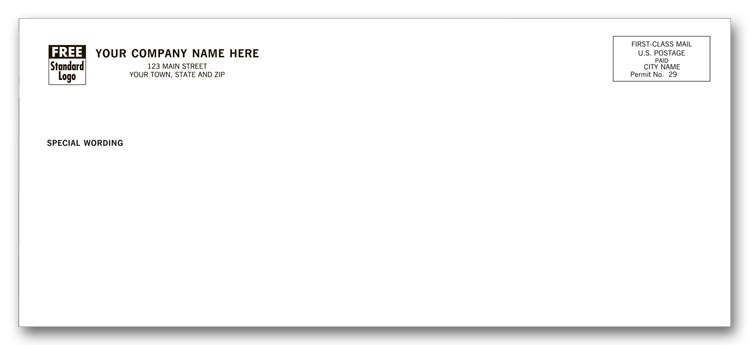 10RCC #10 EnvelopeSize: 9 1/2 x 4 1/8" Make doing business more efficient with #10 Envelopes custom printed with your company logo and address. Crisp, 24# bright white wove paper stock immediately conveys a professional image. Commercial Flap. Diagonal Seam....