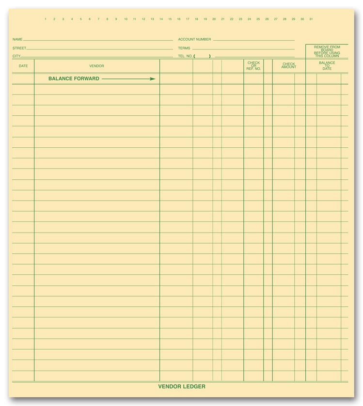 Record details for individual accounts on these quality ledger cards, and order extras for new employees or vendors.