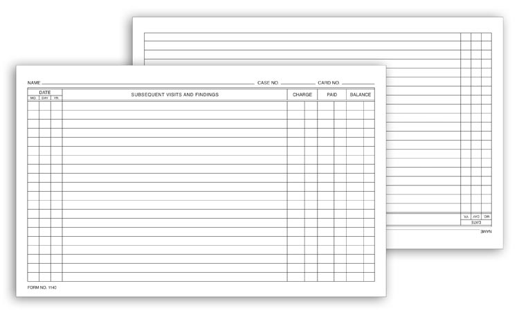 1140 Continuation Exam Records Card Style Without Account Record Size: 5 x 8"These plain ruled record forms provide ample space for detailed documentation of patient visits and for making clinical notes and observations.completed. Two-sided patient record cards for detailed treatment...