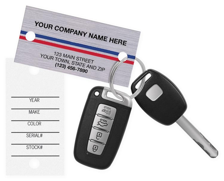 Our most popular auto key tags prevent service mix ups & deliver miles of free advertising - for a few cents apiece!