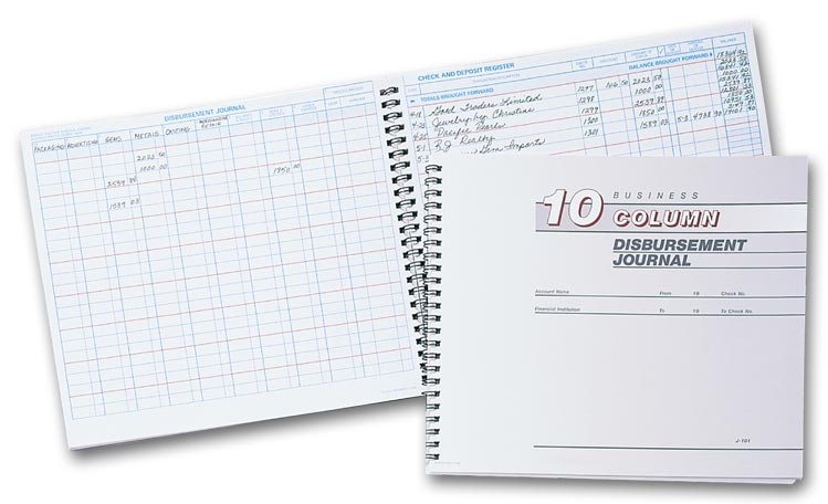 126051N Cash Receipts Journal 10 Column Disbursement JournalSize: 10 x 8 1/2" Ten-column disbursement journal tracks checks, fund transfers, withdrawals, automatic payments and deposits. Handy spiral binding lets book lay flat when open. White bond paper with black and red printing...