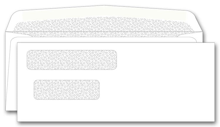 131041N Double Window Envelope Size: 8 7/8 x 3 9/16" No addressing needed! Just fold, insert materials and mail. The double window design clearly shows return and destination addresses. Quality paper. 24# white stock. Keep contents confidential. Tinted inside pattern...