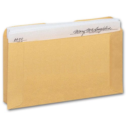 At-a-glance identification! Buff colored kraft file pockets are sealed on 3 sides with a recessed front that reveals the patient name atop the file card.