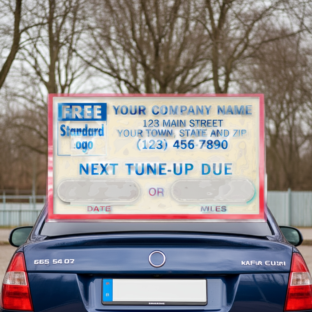 1690D Next Tune-Up Static Cling Windshield LabelSize: 2 1/2 x 1 1/2" Bring customers back! See through vinyl labels apply easily to the windshield, reminding customers when and where to return for service. Quality UV label has 6 mil....