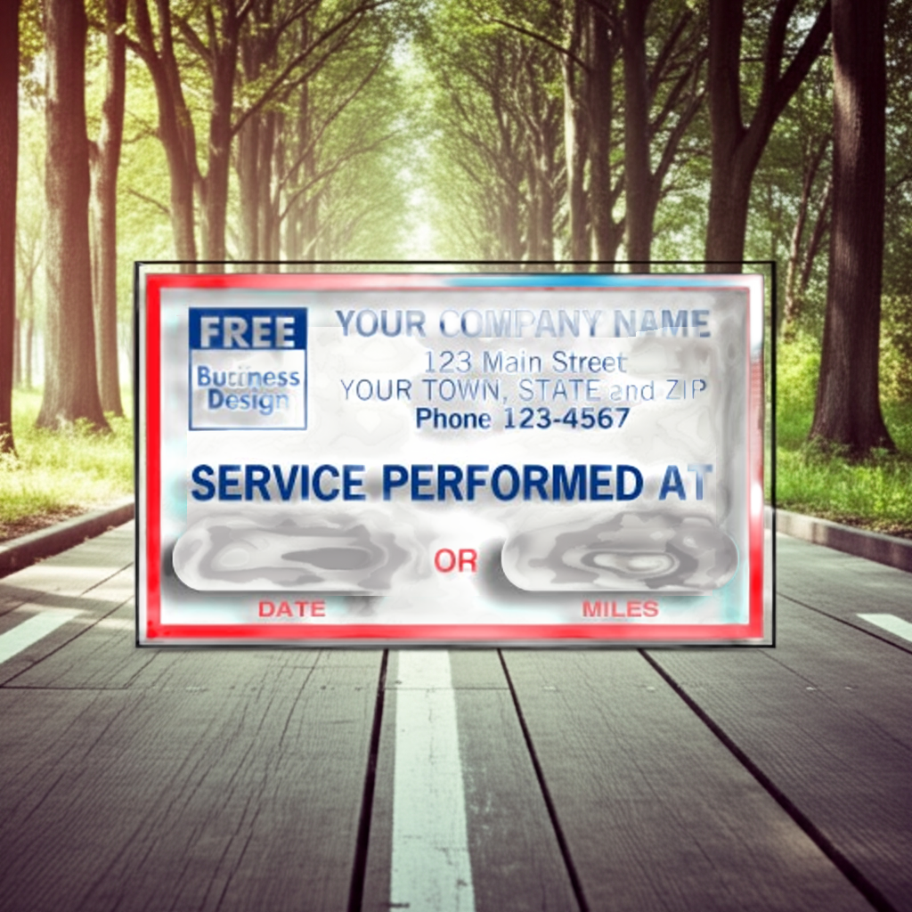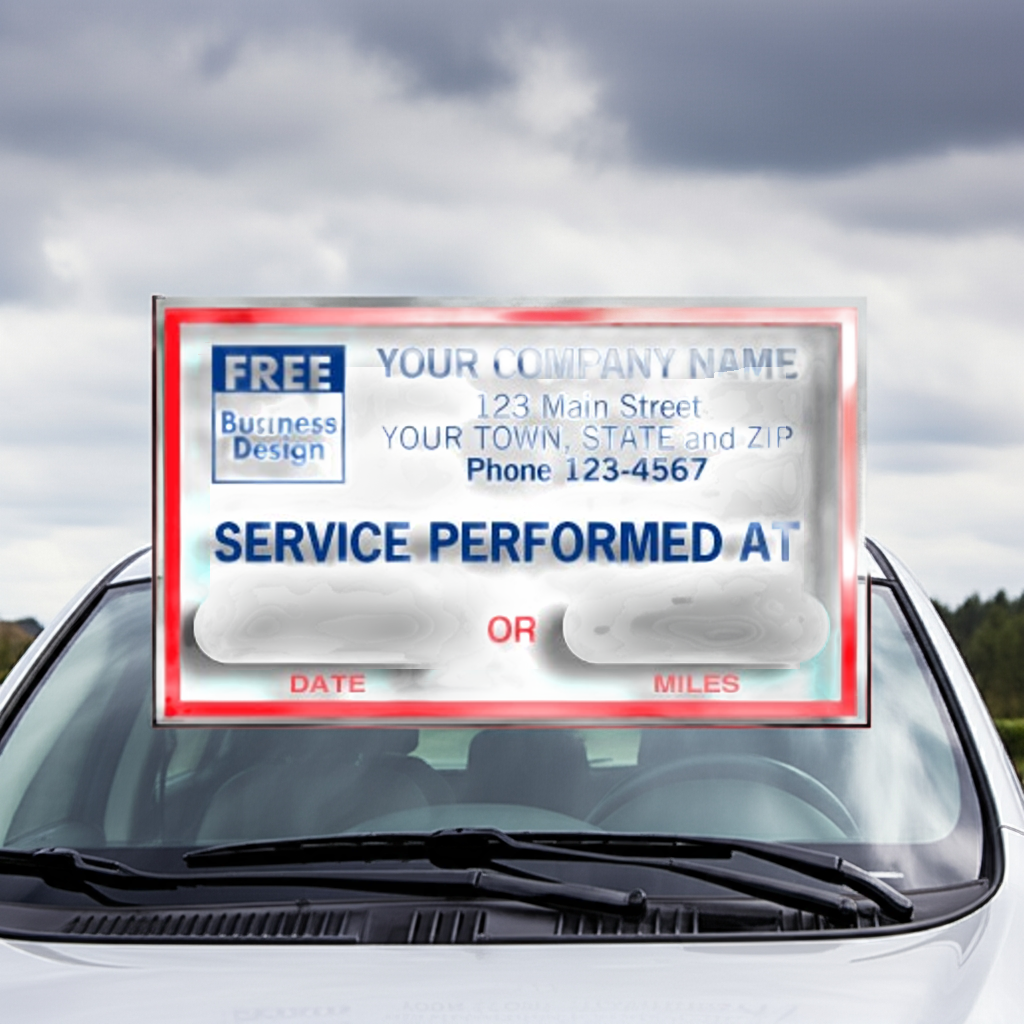 See through vinyl labels apply easily to the windshield, reminding customers when and where to return for service.