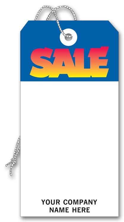 199 Sale Tag Stock Blue White LargeSize: 3 1/8 x 6 1/4" Move merchandise fast! Colorful tags clearly display price and give your business a professional look. Durable card stock. Free personalization up to 2 lines in black ink. Imprinted...