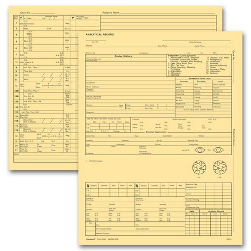 20974.1 Optometry Exam Record Form Letter Style Two-Sided BuffSize: 8 1/4 x 10 3/4"Keep accurate records! Systematically record optometric history and present complaint, as well as diagnosis and prescribed treatment. Room for case analysis, progress reports and recall exam results. 24# buff...
