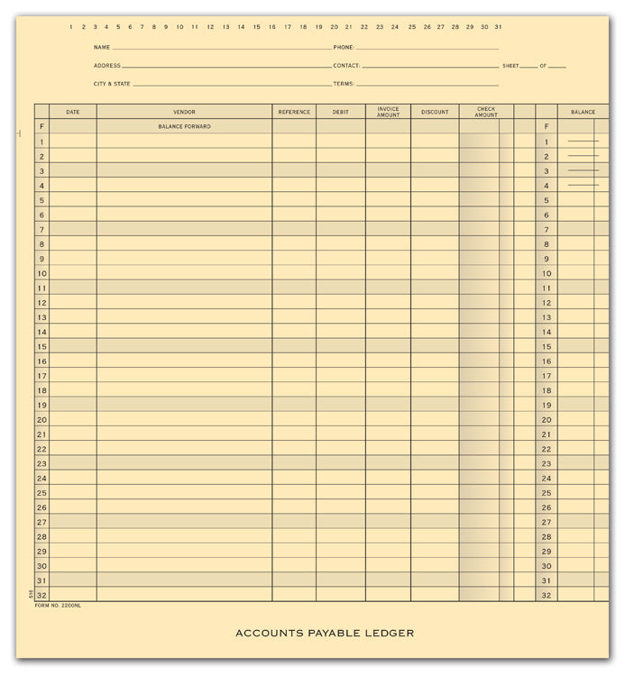 2200NL Accounts Payable Ledger Size: 10 3/8 x 11" Handy ledger cards make it easy to keep a complete purchase and payment history of every vendor you do business with. Each card records purchases, invoice information and payments for your...