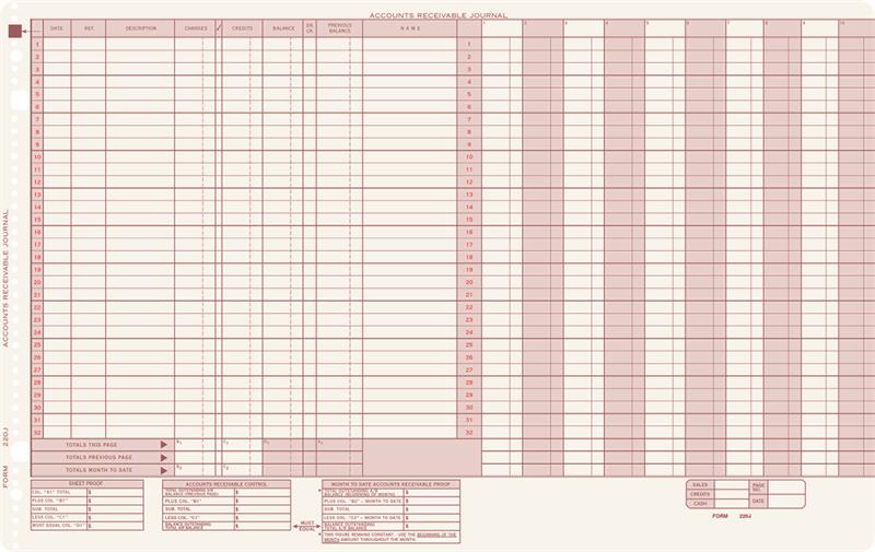 220J Accounts Receivable Journals Size: 17 1/2 X 11"