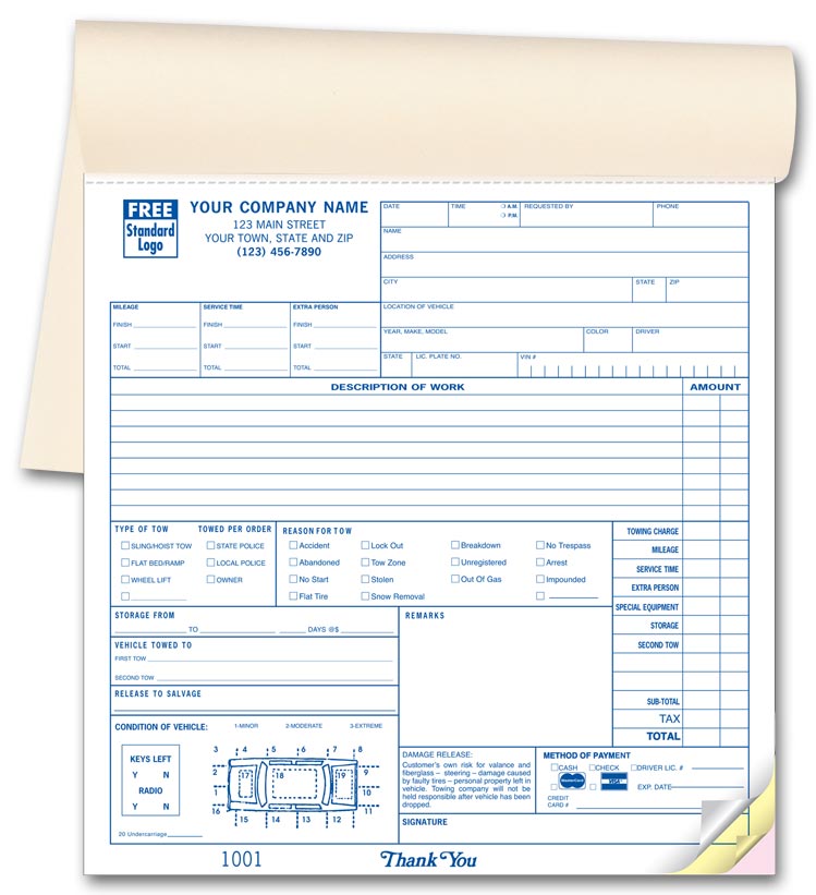 2527 Booked Road Service Towing Service OrdersSize: 8 1/2 x 8 1/2" Save time when you're on the road! NEW Road Service/Towing forms capture all the important details such as vehicle information, mileage and more. Larger format gives you...