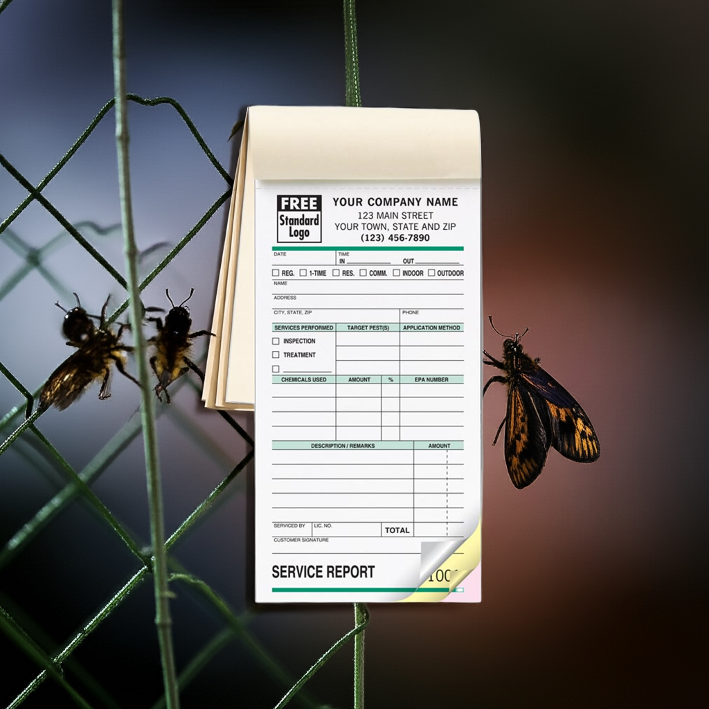 Specially designed pest control reports help you meet regulations, with pre-printed sections to list target pests, chemicals applied, application method and more.