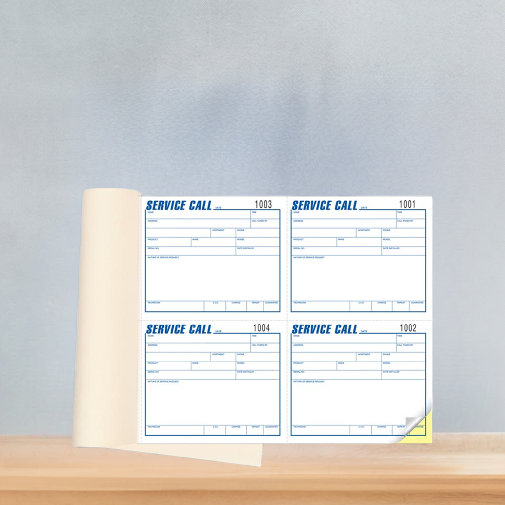 4 Service Call BookSize: 8 1/2 x 11" overall Our tidy phone message books make it easy to organize your businessKeep track of all calls! Detailed slips help you get all the information you need for the job upfront. Pre-numbered....