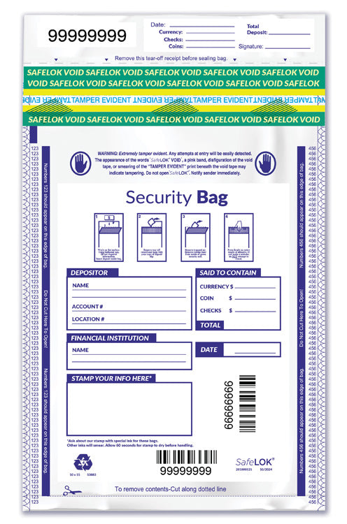 - Single pocket high security deposit bags made from opaque #4 recyclable plastic to keep contents hidden.