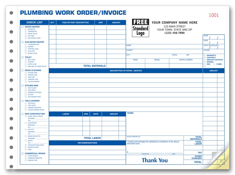 6535 Plumbing Work Orders Side StubSize: 11 x 8 1/2"Just for Plumbers!Keep an accurate record of the entire job!Use the preprinted plumbing checklist to help you plan materials, schedule jobs and record materials used. Horizontal format. Last part is sturdy...
