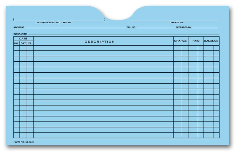 5L60B Printed Card File Pocket Single Column BlueSize: 5 1/8 x 8 1/8" Record patient information easily on the front of these file pockets, preprinted in a single-column format. Top tab card file pocket features space for patient information. Durable heavy...