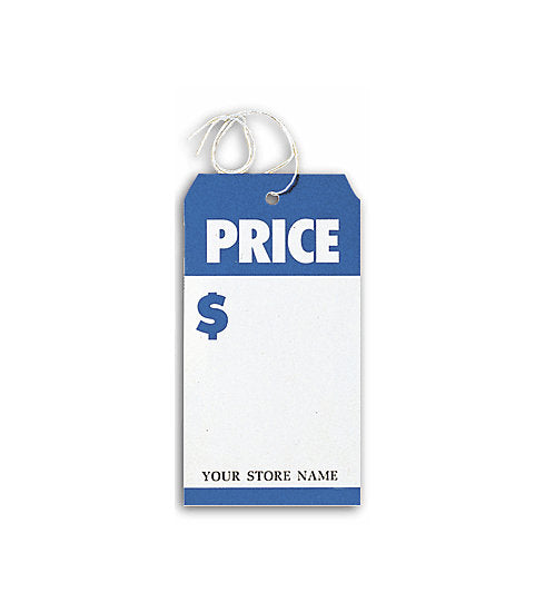 6042 Price Tags Large Blue/WhiteSize: 3 1/2 x 6 1/2" Move merchandise fast! Colorful tags clearly display price and give your business a professional look. Pre-strung. Durable card stock. 110# Scott Index WH. Free personalization of 1 line in black...