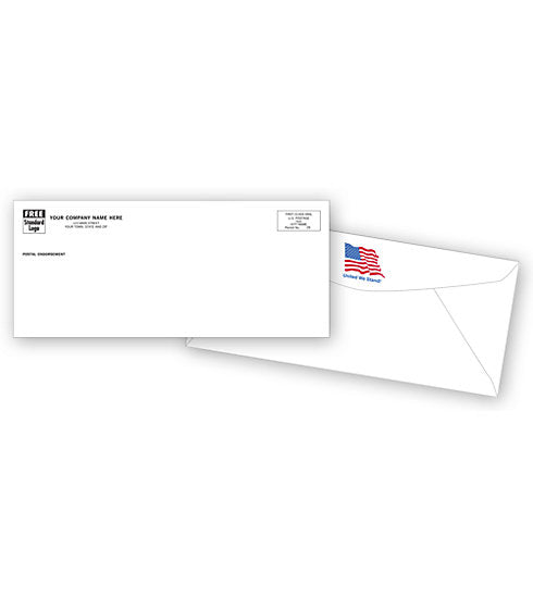740FLG #10 Envelope Flag DesignSize: 9 1/2 x 4 1/8" Look more professional! Envelopes printed with your name and address save you time. Give your business a professional, established look! Patriotic Envelope with flag design. Quality paper stock! 24# White...