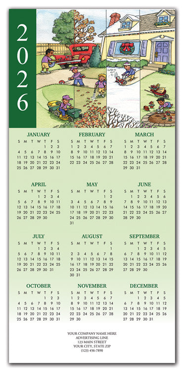 HHZ7414 - N7414 All Year-Round Landscaping Calendar CardSize: 7 7/8 x 5 5/8" (folded)The All Year-Round Landscaping Calendar Card says every season is the growing season. This unique all-in-one holiday card and calendar folds up perfectly to fit inside a white...