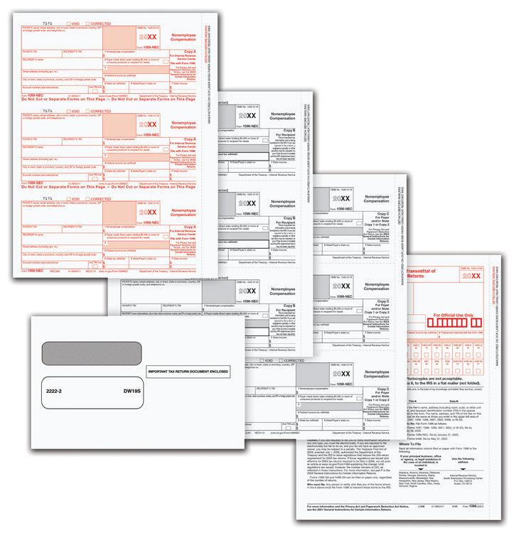 NE61032 1099-NEC Laser Set - 4 Part with EnvelopesSize: 8 1/2 x 11" This popular format for reporting miscellaneous payments and non-employee compensation meets all government and IRS filing requirements. Tax Set Includes: Misc. Copy A, Misc. Copy B,...