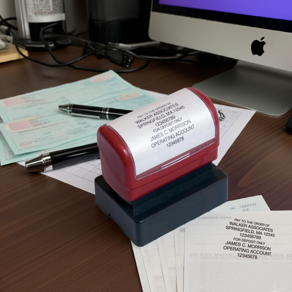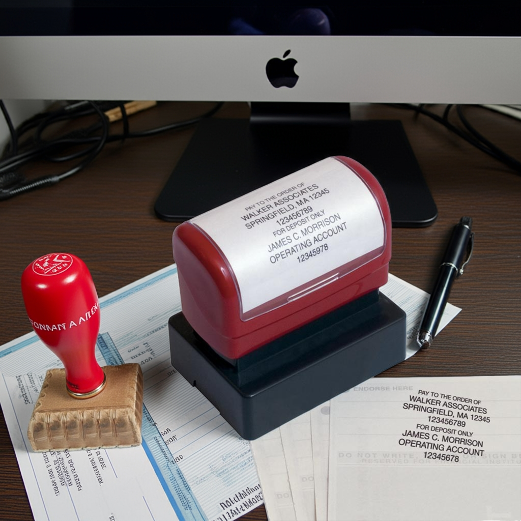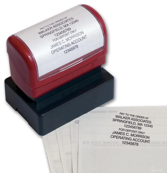 - STAMP COMES PRE-PRINTED "Pay to the Order Of:" or"For Deposit Only.