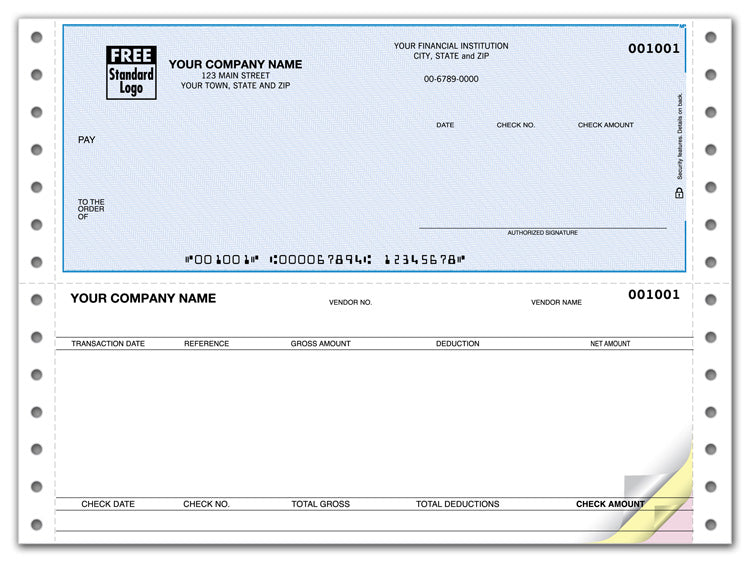 - Built-in check security trusted by 7,000 financial institutions nationwide, with features such as chemically sensitive paper, microprint border, invisible fluorescent fibers, erasure protection, security screen & warning box.