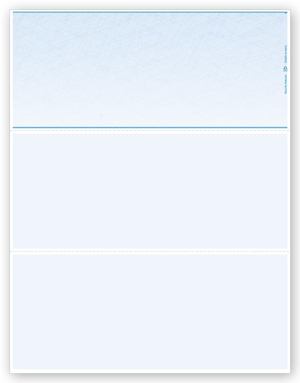 DLT803 Laser Top Check With 3 2/3 & 7 Perforated Blank Check Size: 8 1/2 x 11" Manage multiple accounts efficiently by using one check for all accounts! Designed for use with software that prints the entire check, bank information...