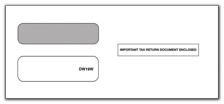 DW19W - FORMERLY TF22221 1099 Tax Form Double Window Envelope Size: 3 7/8 x 8 7/8" Ensure immediate attention! Double-window envelopes come preprinted with the statement "Important Tax Return Document Enclosed". Printed lining to protect your privacy. Gummed flap seals...