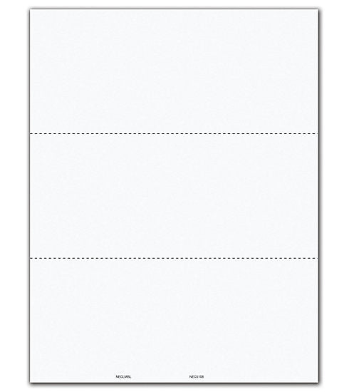 NE5108B 1099 NEC 3-Up Blank Backer No Stub - BulkSize: 8 1/2 x 11" This popular format for reporting miscellaneous payments and non-employee compensation meets all government and IRS filing requirements. Use to Report: Miscellaneous payments such as rents, royalties,...