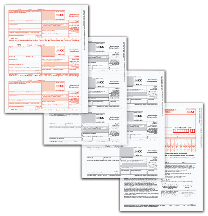 NE6103 1099-NEC Laser Packaged Set - 4 PartSize: 8 1/2 x 11" All the laser 1099-MISC tax forms you need in one package, for one low price!This popular format for reporting miscellaneous payments and non-employee compensation meets all government and...