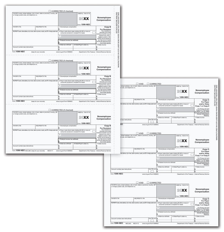 NE6113 1099-NEC 3Up Laser: 3 Part w/Electronic Filing Size: 8 1/2 x 11" All the laser 1099-MISC tax forms and envelopes you need in one package, for one low price!This popular format for reporting miscellaneous payments and non-employee compensation meets...