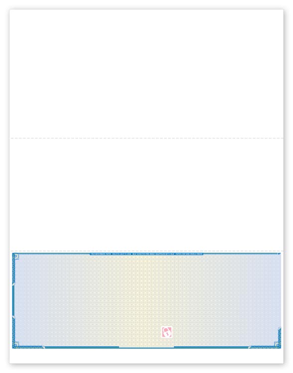 SLB833 High Security Bottom Blank Laser ChecksSize: 8 1/2 x 11" Security Blank checks offer the quality and consistency you need to print your own.These affordable, Security blank bottom laser checks help you manage all your accounts with one check...