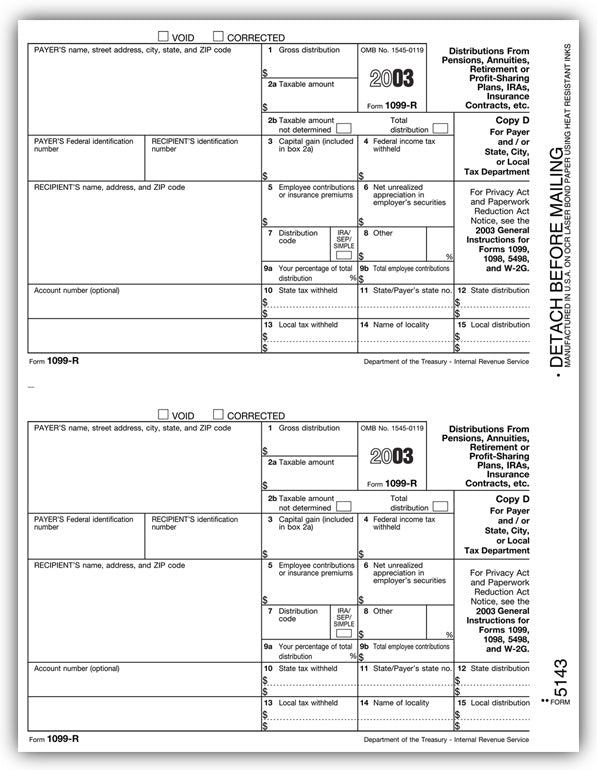 TF5143B Laser 1099-R Copy D BulkSize: 8 1/2 x 11" We supply a full range of tax forms but you only need order the forms you require for filing.Meets all government and IRS filing requirements.Popular format is ideal for reporting...