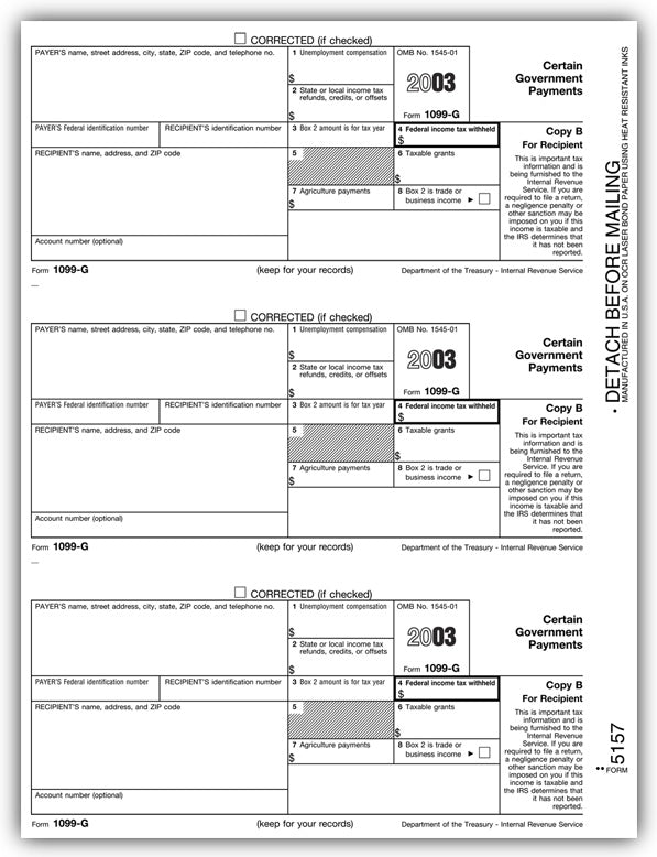 TF5157 Laser 1099-G Payer and/or Borrower Copy B Size: 8 1/2 x 11"We offer a wide range of tax forms, including a ful line of 1099 tax forms for all types of reporting. Meets all government and IRS filing requirements.Popular...