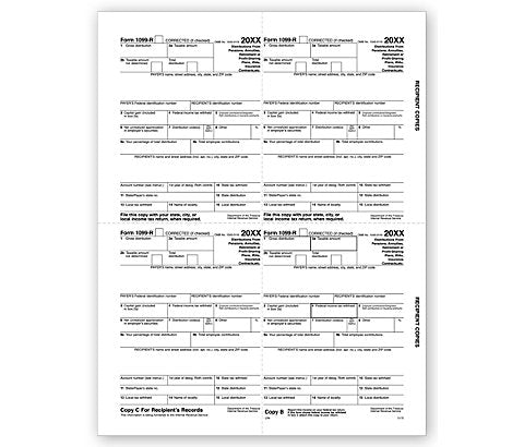 TF5175 Laser 1099-R 4-Up Recipient Copy B,C,2 Size: 8 1/2 x 11"We offer the most popular format of 1099-R tax forms. This Recipient Copy is ideal for reporting distributions from retirement or profit-sharing plans.Meets all government and IRS filing requirements....