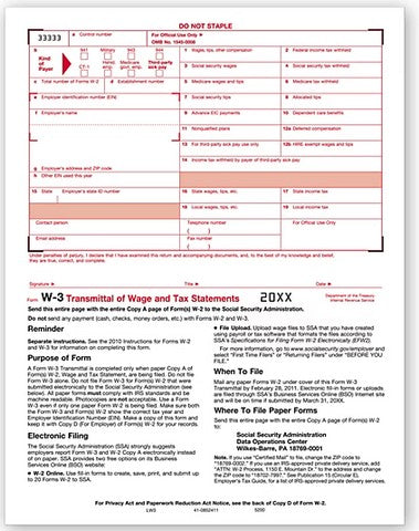 TF52001 LASER W3 TRANSMITTAL Size: 8 1/2 x 11"Meet government requirements! All businesses must submit a W-3 Transmittal with their W-2s. Quality Paper: Government approved 20# bond paper. Use to Transmit: Form W-2, Wage and Tax Statement. Printer Compatibility:...
