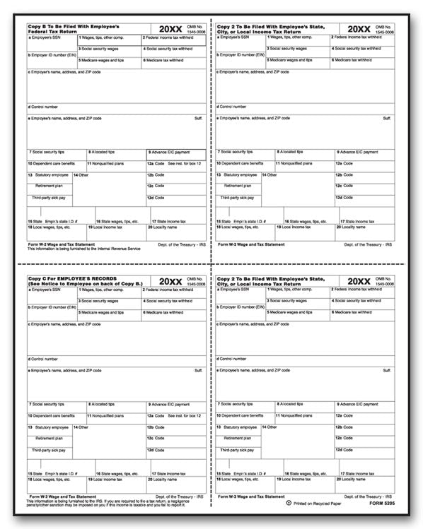 TF5205 4 Up Laser W-2Size: 8 1/2 x 11" Our 4-Up Laser W-2 tax form format is ideal for reporting wages paid.Meets all government and IRS filing requirements.Popular format is ideal for reporting wages paid. Ideal for any business! Simply...