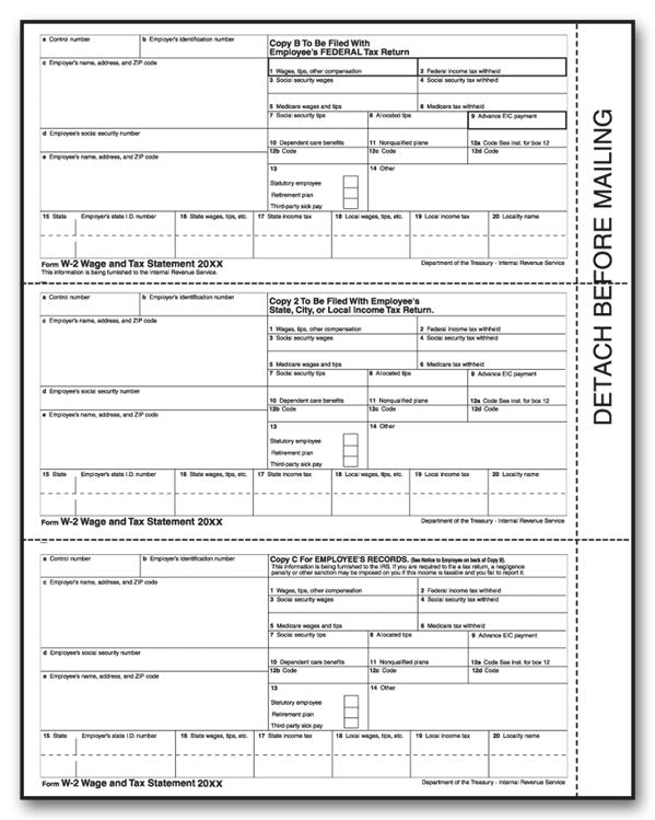 TF5210 3-Up Laser W-2 Employee Copy Horizontal FormatSize: 8 1/2 x 11" (1/2" Detachment) Ideal for any business!Use this 3-Up Laser W-2 tax form for reporting wages paid.Meets all government and IRS filing requirements.Popular format is ideal for reporting wages...