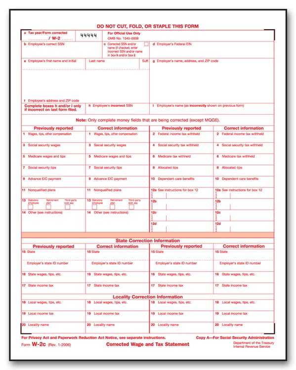Popular format is ideal for making corrections to various W-2 forms.