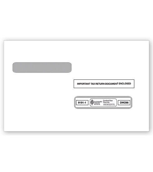 TF91911 4-Up Box Laser W-2 Double-Window EnvelopesSize: 9 x 5 5/8"Ensure immediate attention! Double-window envelopes come preprinted with the statement "Important Tax Return Document Enclosed". Quality paper! 24# White Wove Confidential Double-Window Envelope accommodates W-2 Form TF5214 Gummed flap seals...