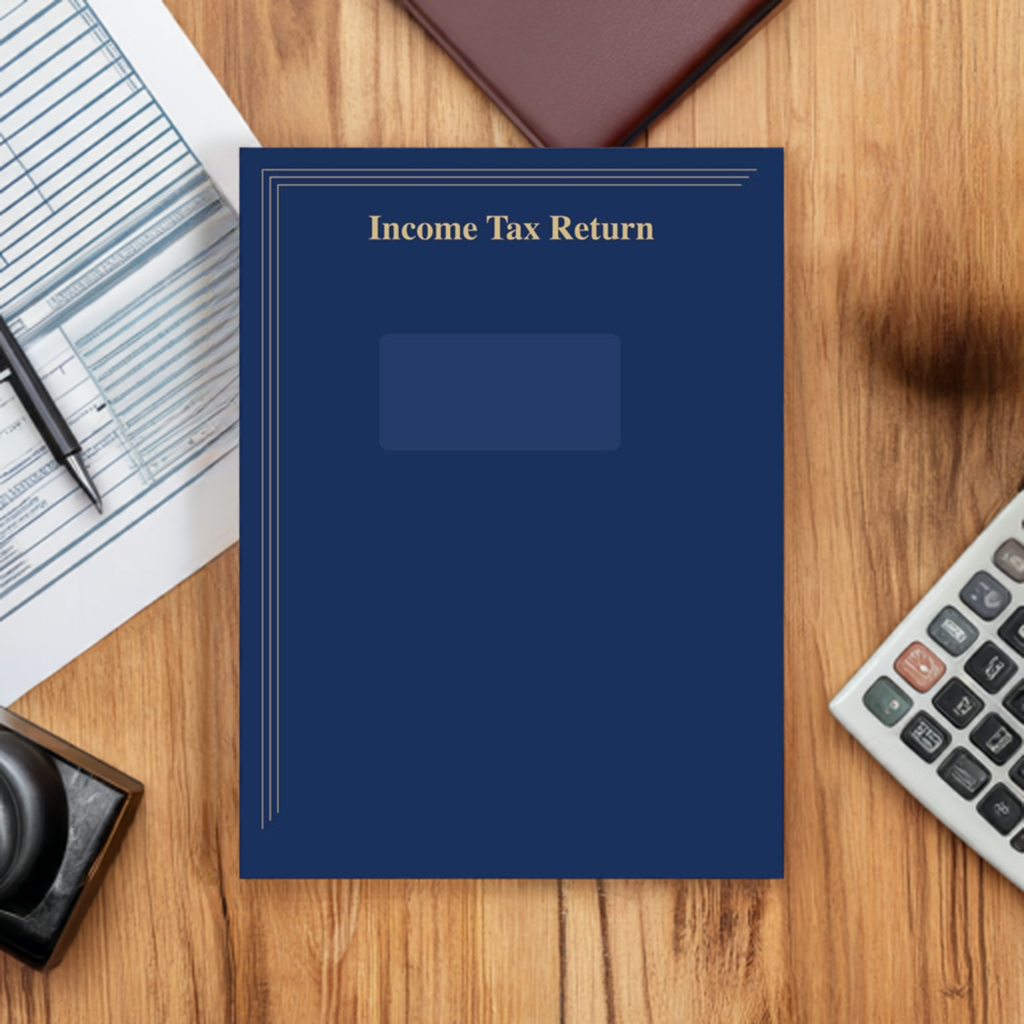TX2W-B-1 Tax Folder with WindowSize: 8 3/4 x 11 3/4" Quality tax folders! 8-3/4"x11-3/4" tax folder made of heavy 80# linen stock, two glued 4" pockets, and double scored expandable 1/4". Add a business card. Each folder features handy business...